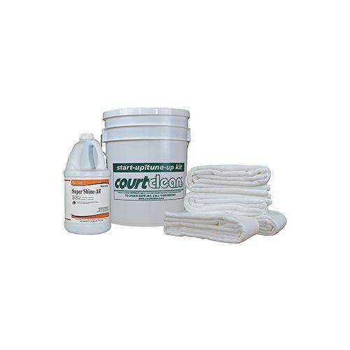 Over the course of the season, scuffs and shoe marks from players and fans alike can leave your court looking dull and worn. Use this courtclean start-up/tune-up wood floor cleaning kit to restore your hardwoods to top playing condition. When spectators flood the gymnasium, they'll be greeted by a gleaming, highly polished surface thanks to the shine-all cleaner, which strips away built-up grime and residue. The included towels and bucket make preparation and application of the cleansing formula simple.