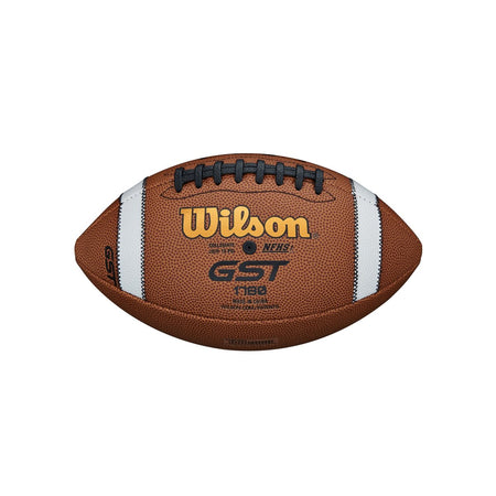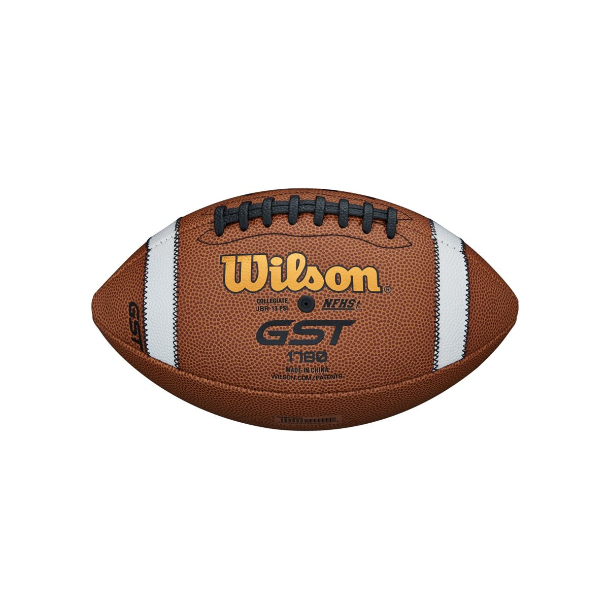Wilson GST Serie Athletes can march down the field toward the end zone with this Wilson GST Composite leather football. Whether slinging downfield bombs or diving over the goal line, players can securely hold onto the ball thanks to the deep-pebbled composite leather.